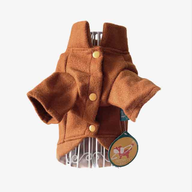 Chaqueta para perro sin forro, detalle de leoncito bordado con peluche muy abundante. Broches de presión delanteros. Talle holgado.