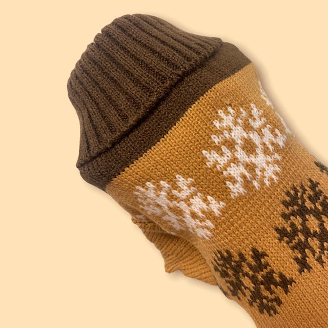 Saco suave tejido navideño mostaza muy fino, cuello tortuga.